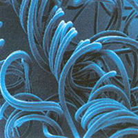 LYCRA?T400?纖維的高分辨率照片表明,每根單絲肉的兩種聚合物產(chǎn)生一種種狗骨狀的橫截面。 |
